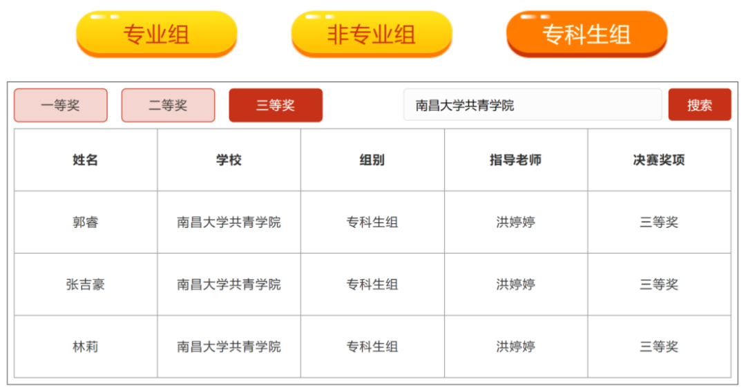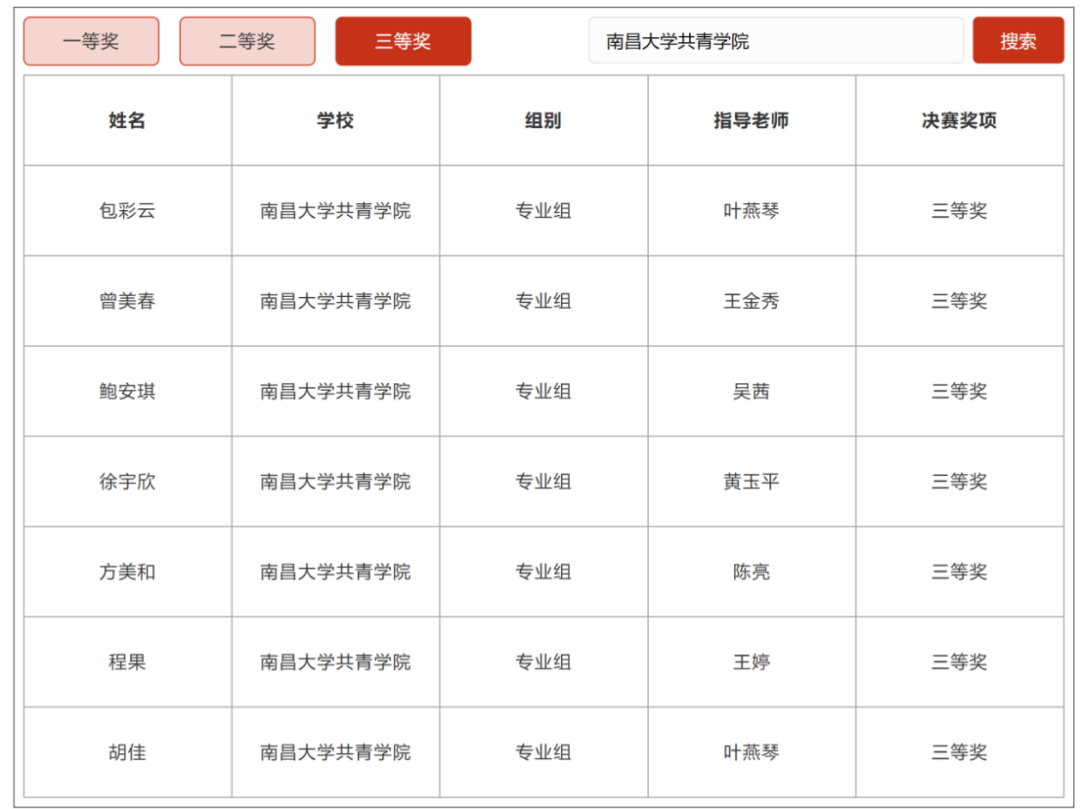 近日,由人文学院协办的2025年第七届全国语言文字大赛国赛获奖名单公布,我校共12名学子获奖。其中,人文学院汉语言文学专业8名学生获奖:占雅君荣获全国二等奖,包彩云、曾美春、鲍安琪、徐宇欣、方美和、程果、胡佳7人荣获全国三等奖;人文学院中文专业4名学生获奖:梁现文荣获全国二等奖,郭睿、张吉豪、林莉3人荣获全国三等奖。